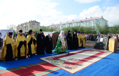После официальной части открытия форума его делегаты и духовенство посетили Петропавловский и в полденьприсутствовали на церемонии развода почетного караула в Петропавловской крепости.