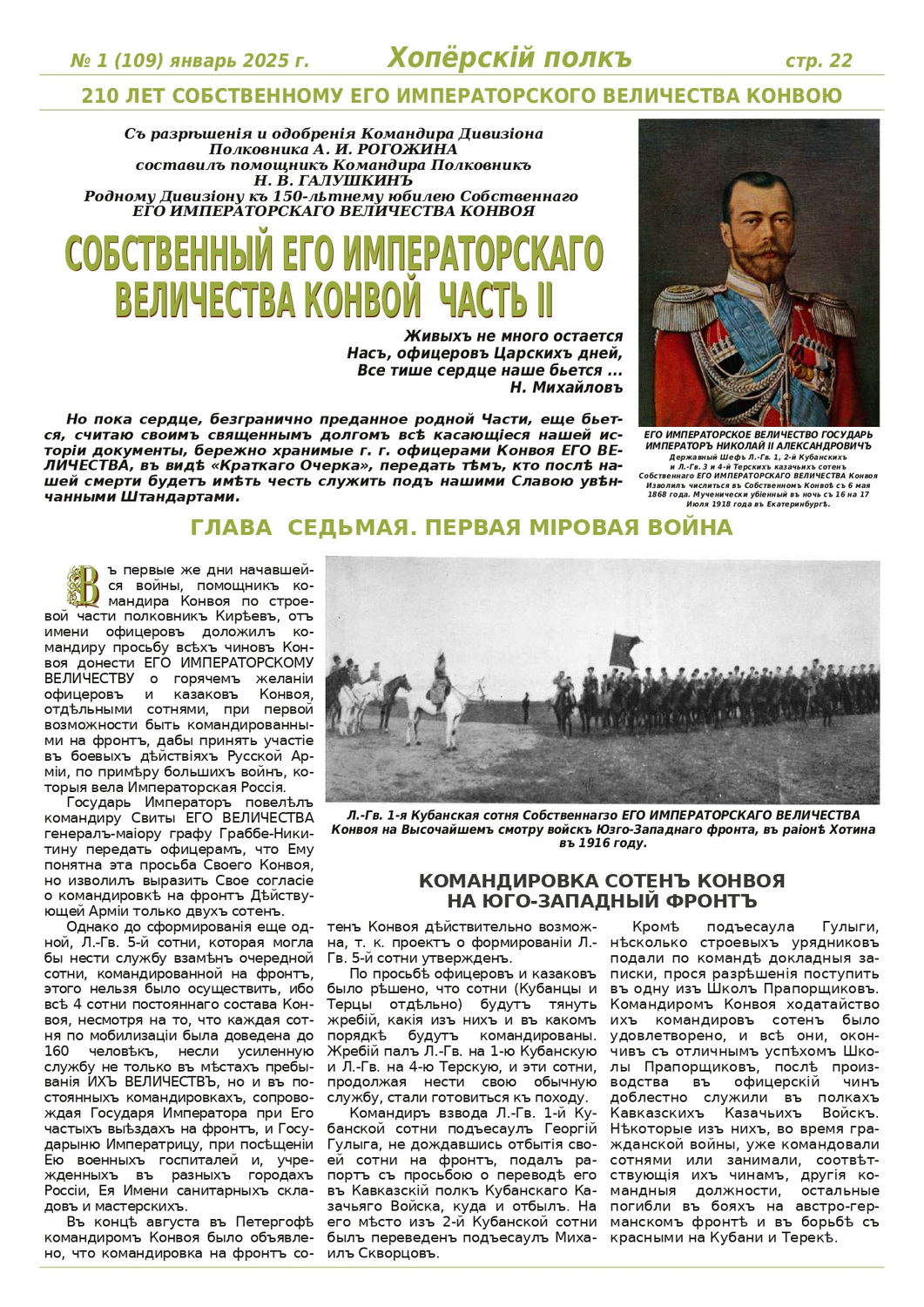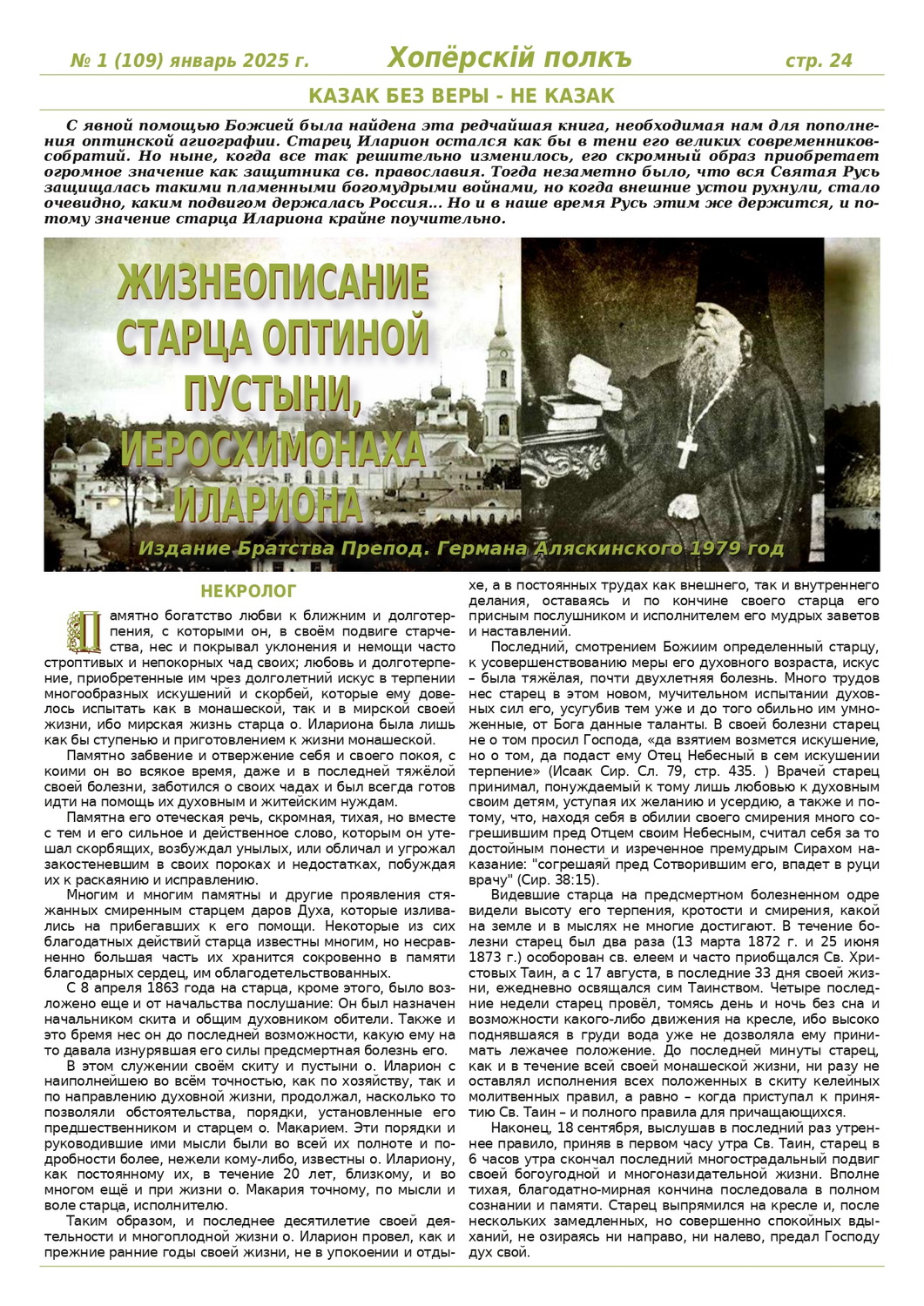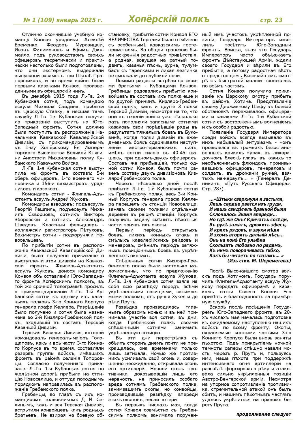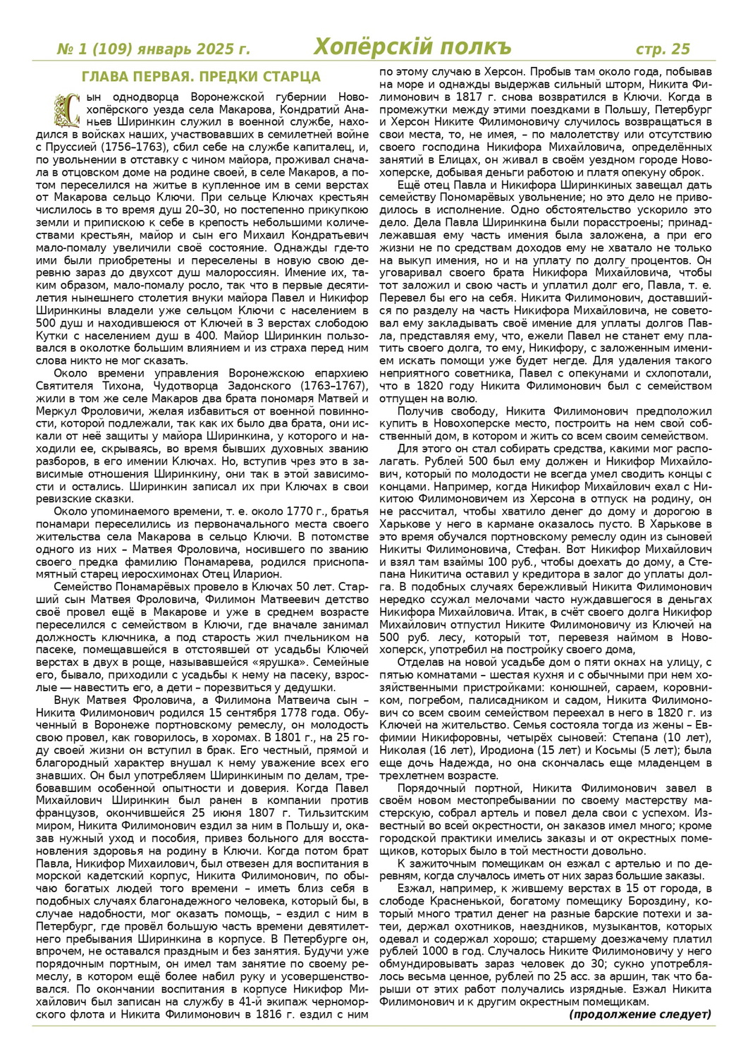Журнал «Хоперскiй полкъ» выпуск №1 (109) январь 2025 года
