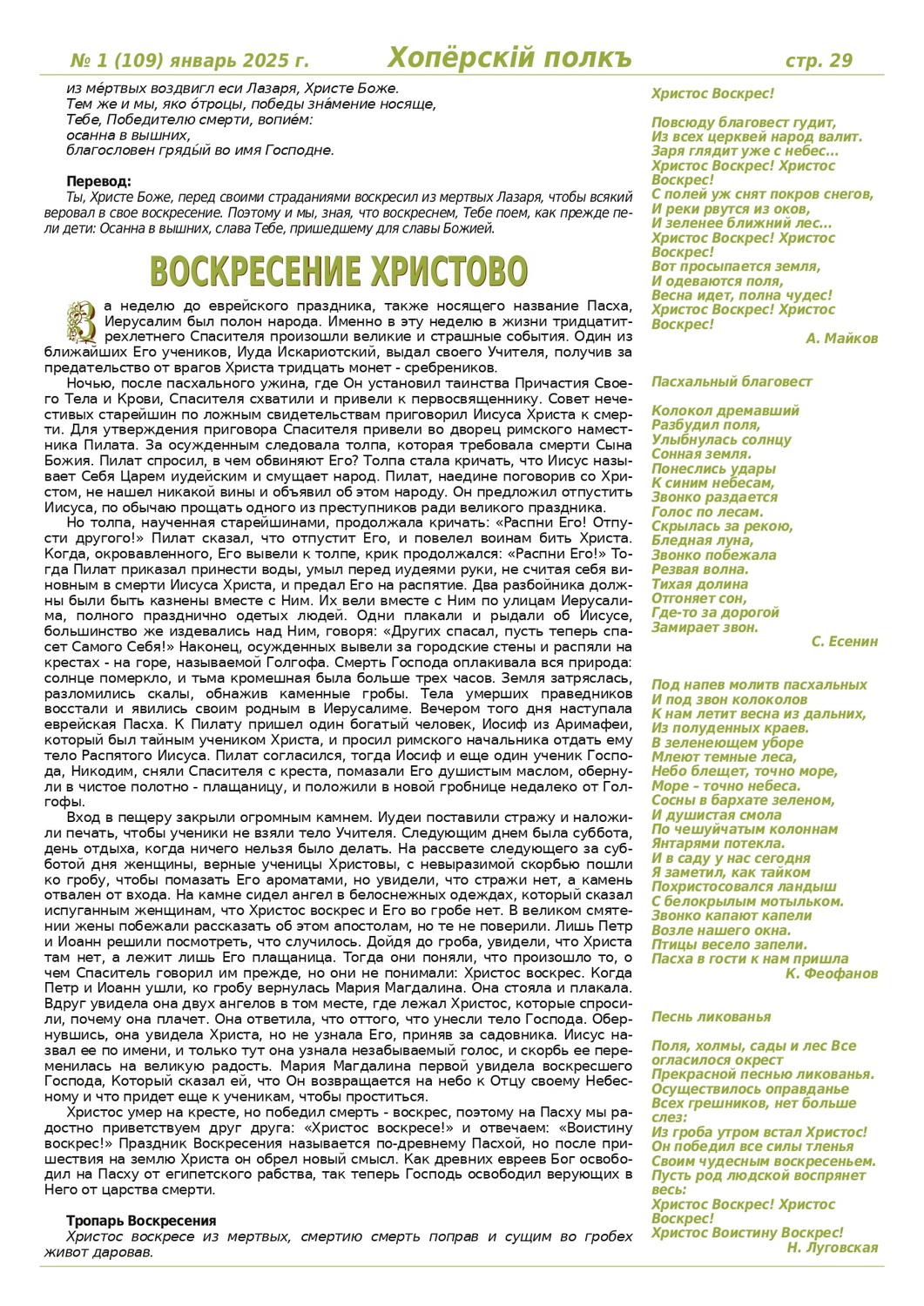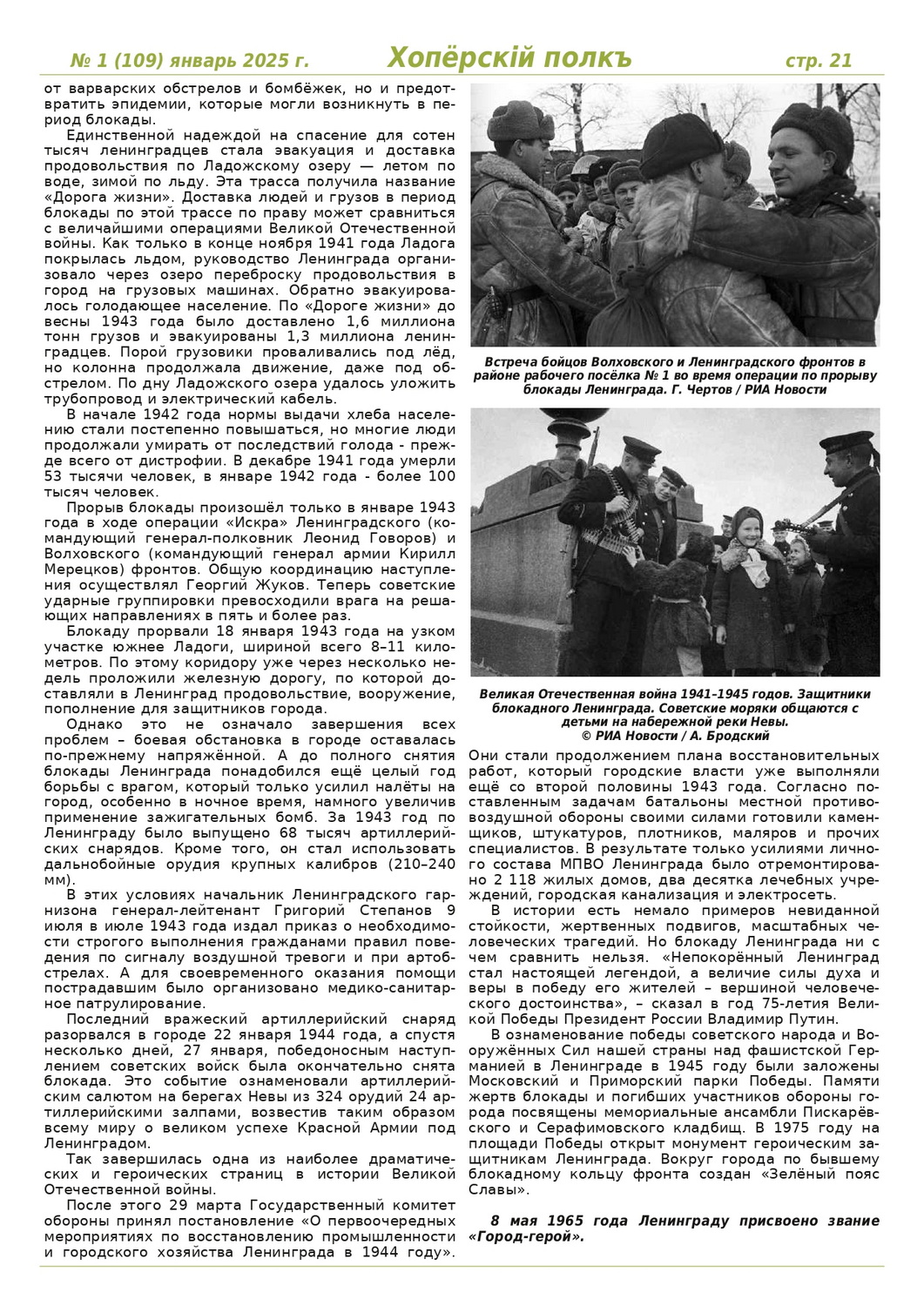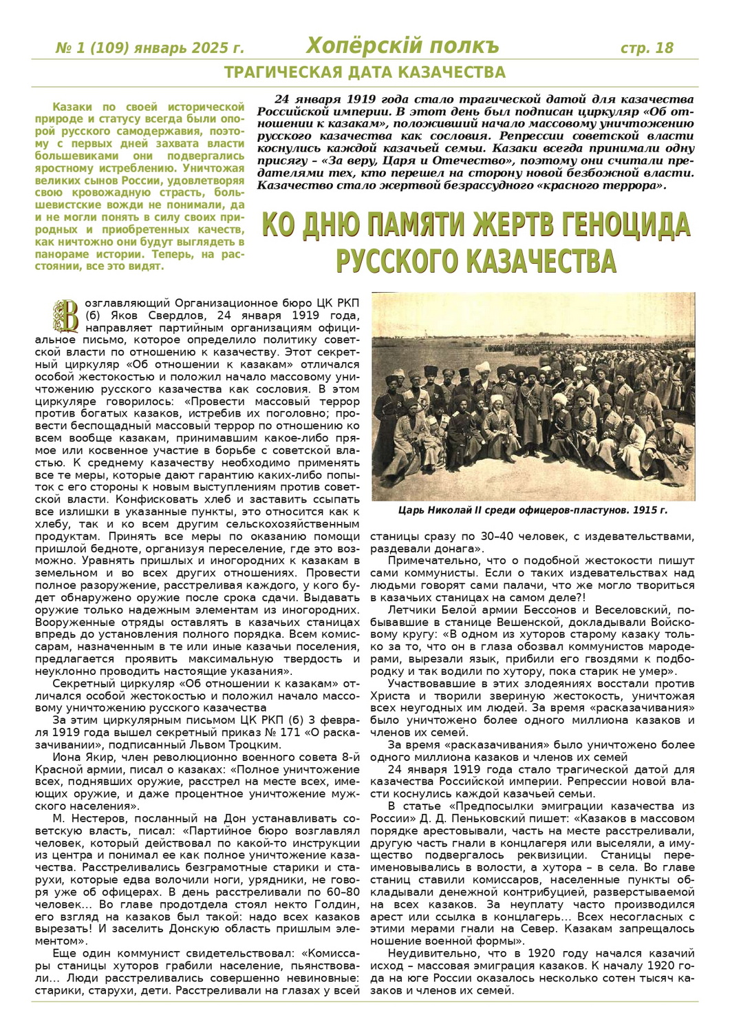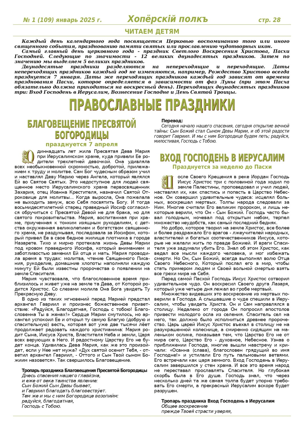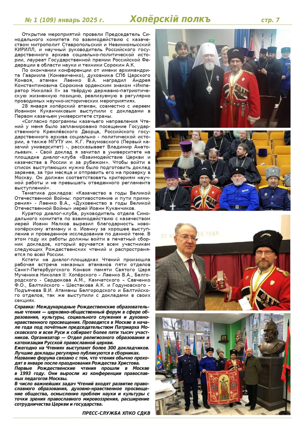 Журнал «Хоперскiй полкъ» выпуск №1 (109) январь 2025 года