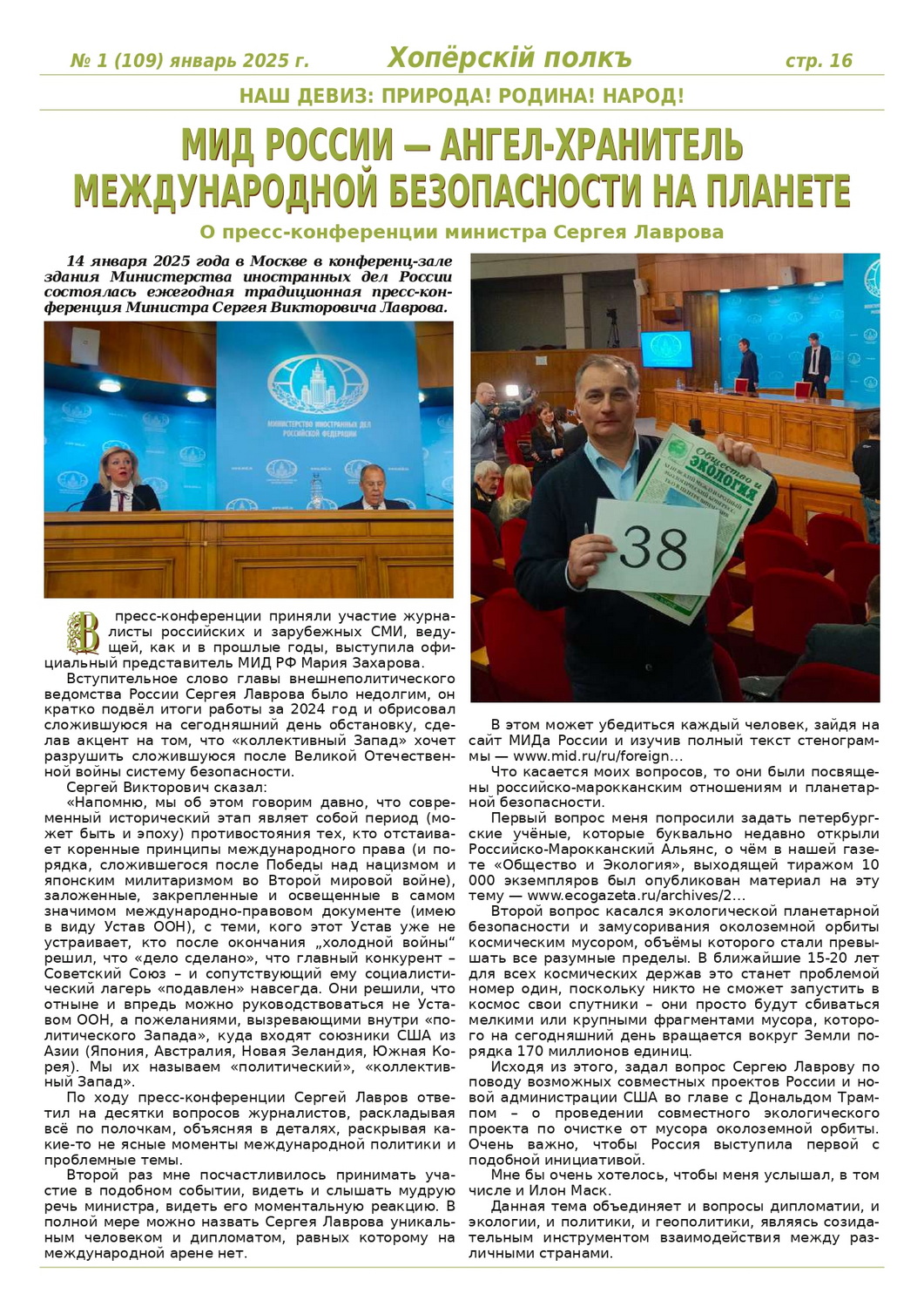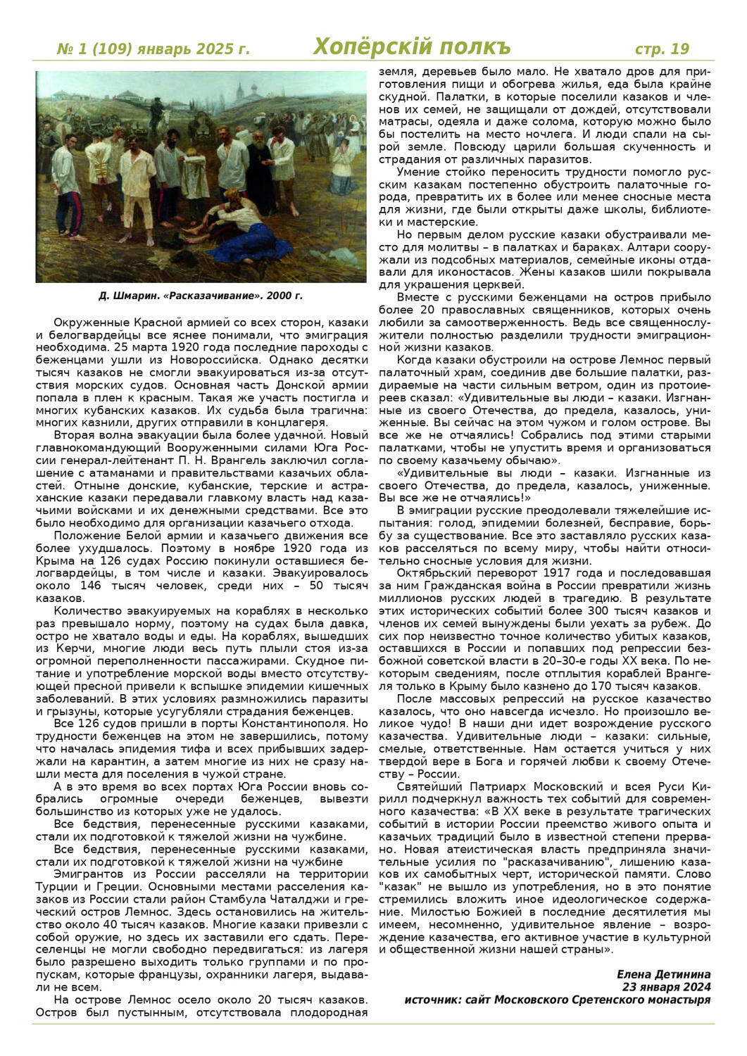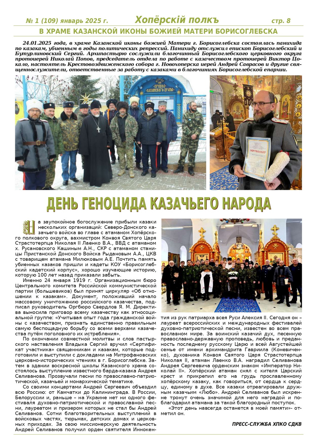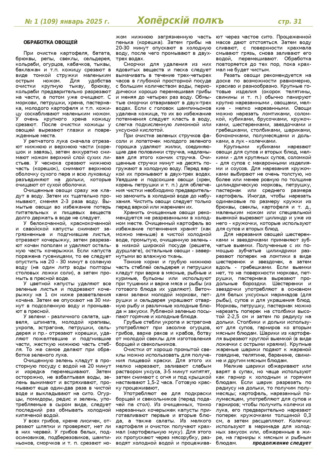 Журнал «Хоперскiй полкъ» выпуск №1 (109) январь 2025 года