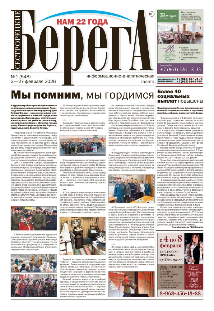 Информационно-аналитическая газета «Сестрорецкие Берега» №1 (548) – Материал «Мы помним, мы гордимся»