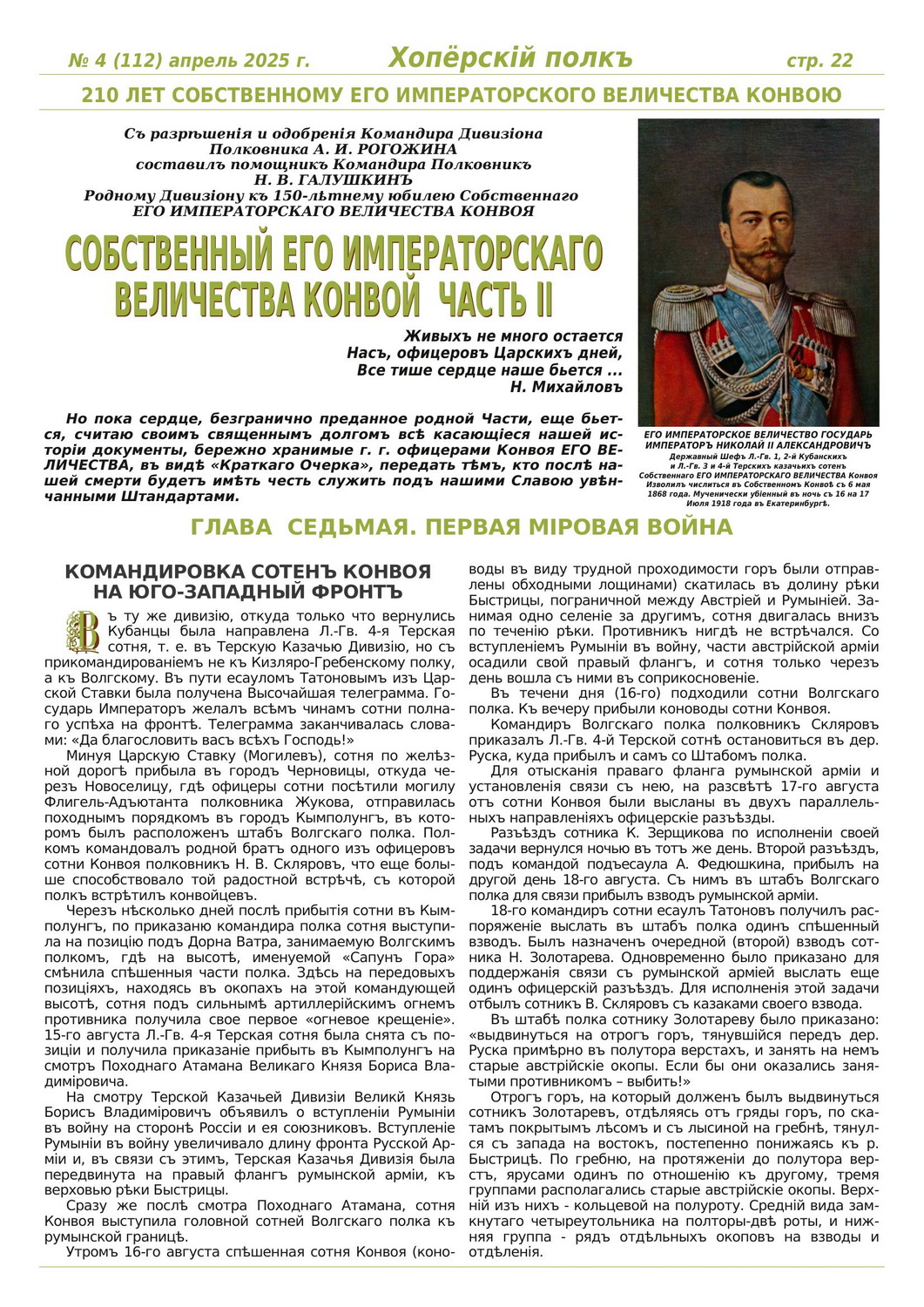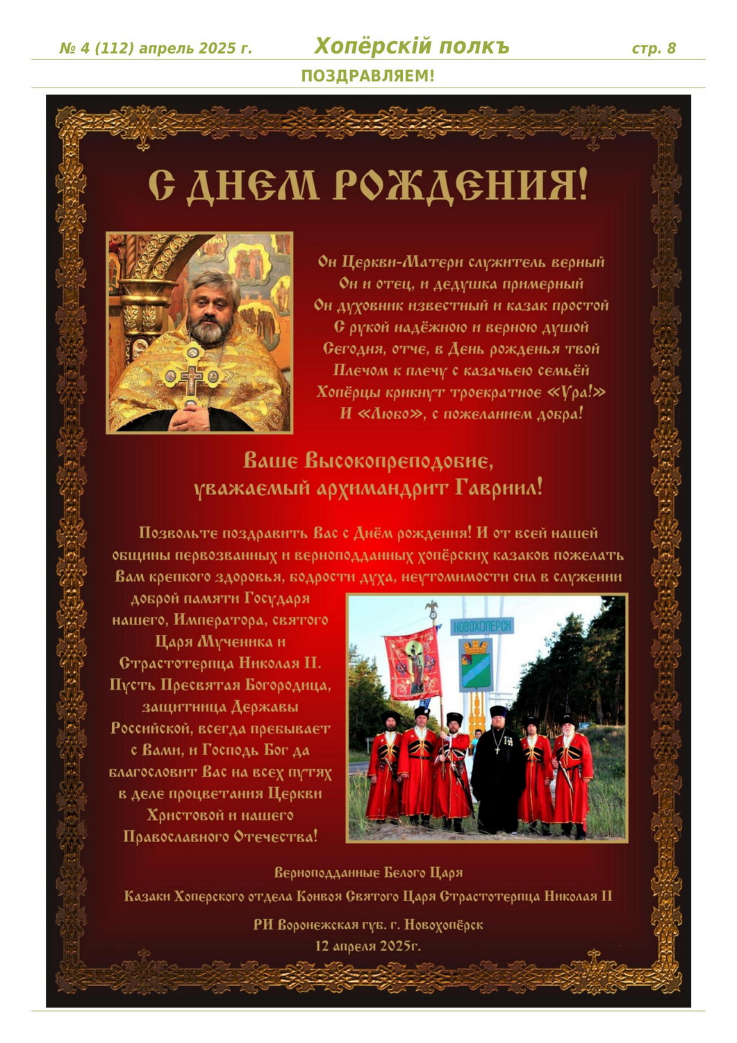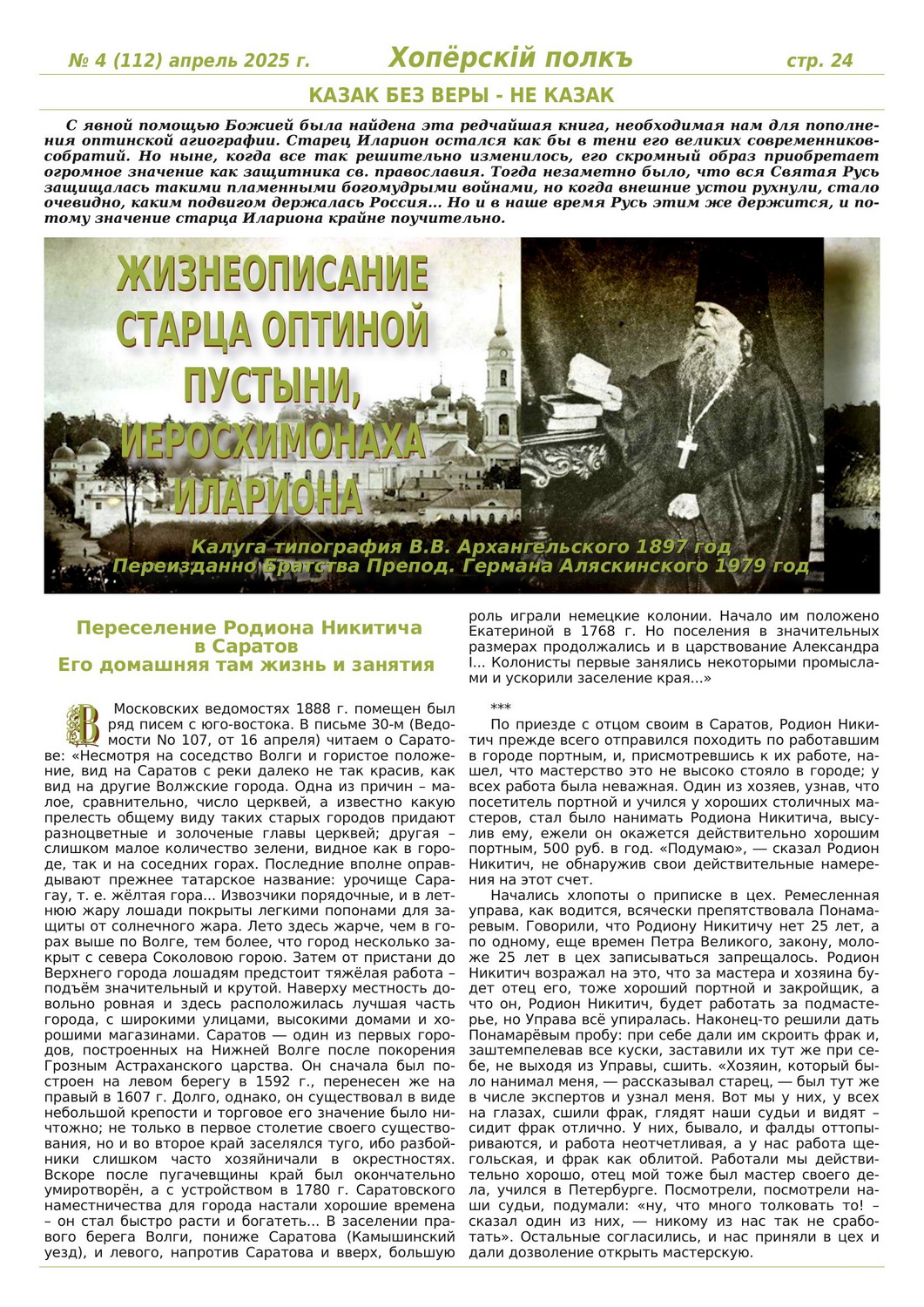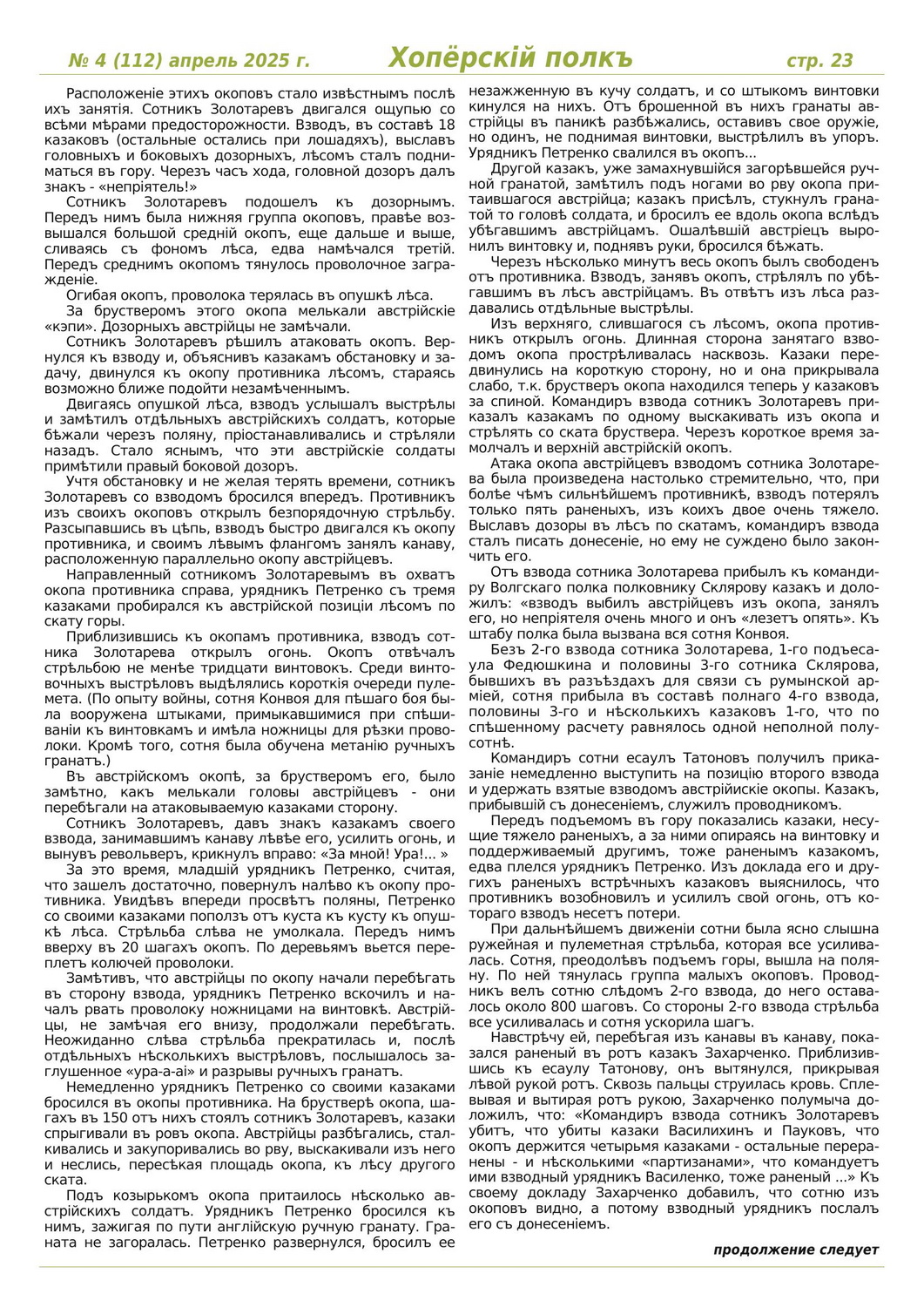 Журнал «Хоперскiй полкъ» выпуск №4 (112) апрель 2025 года