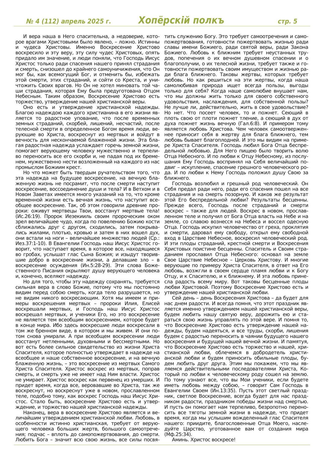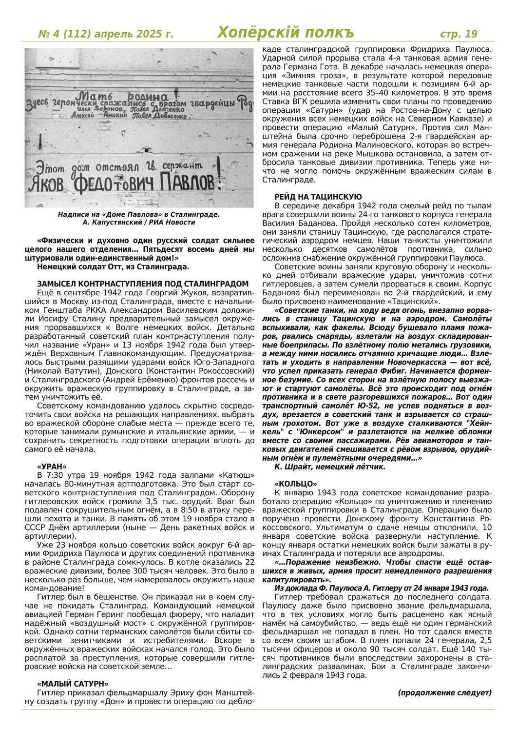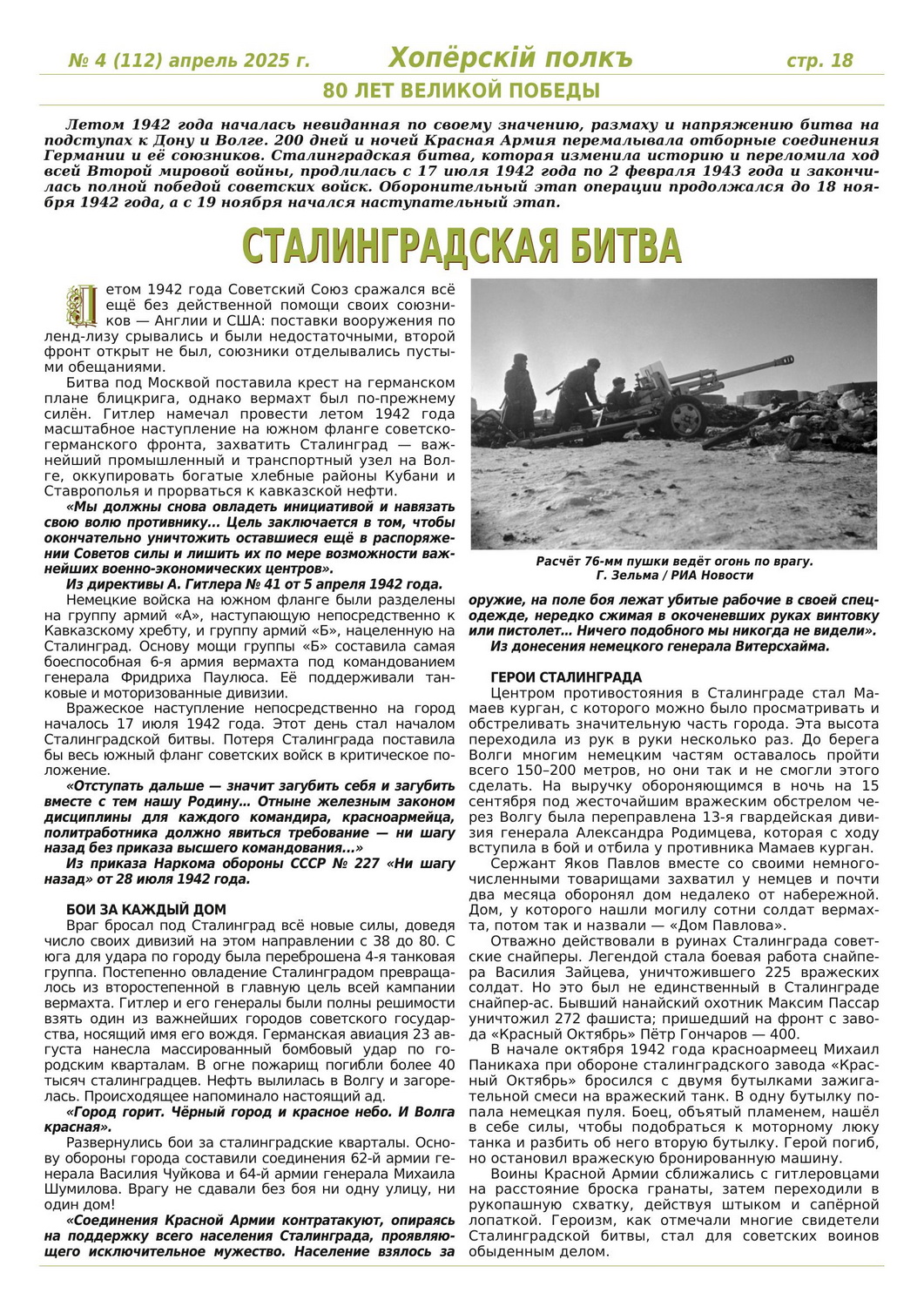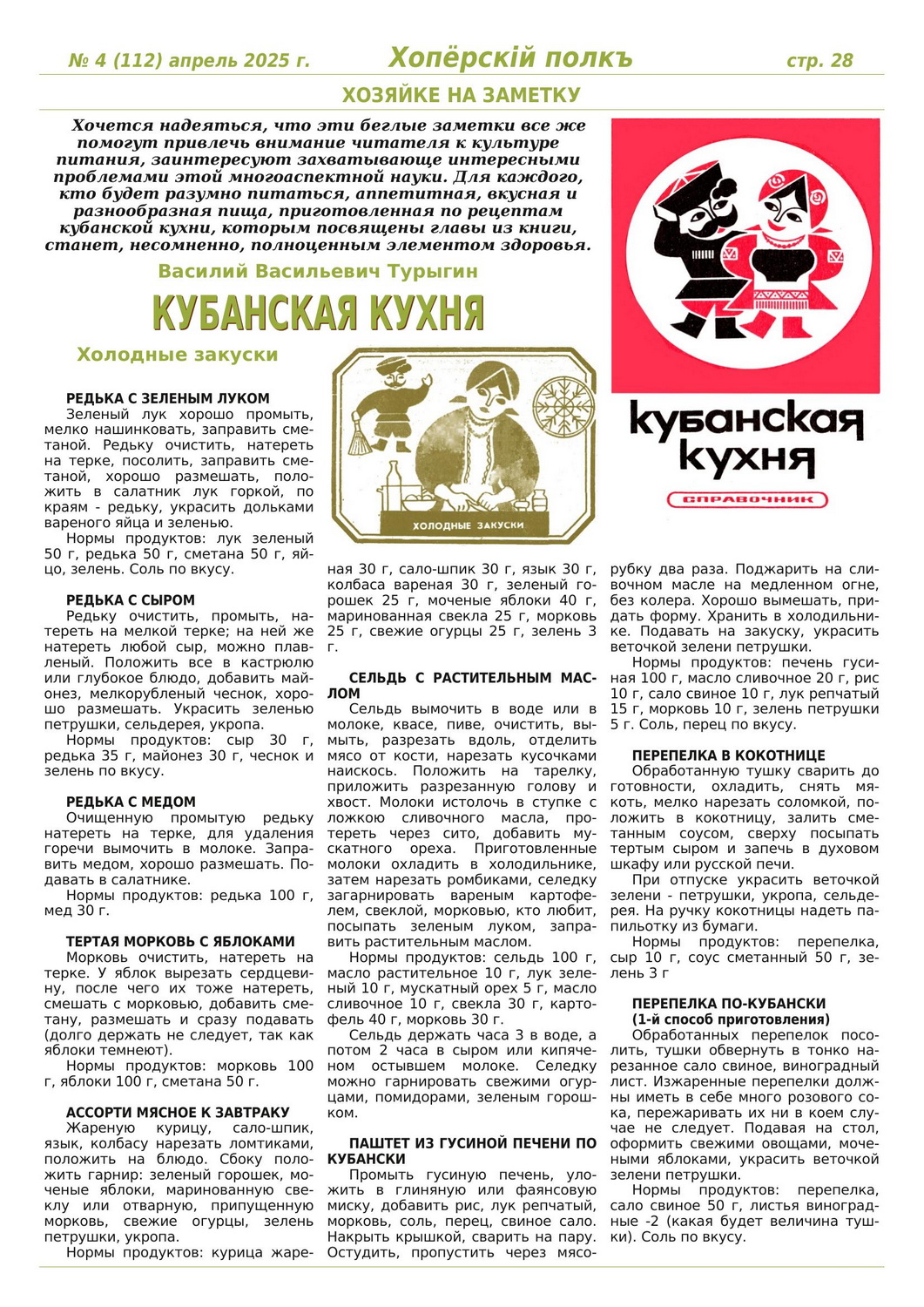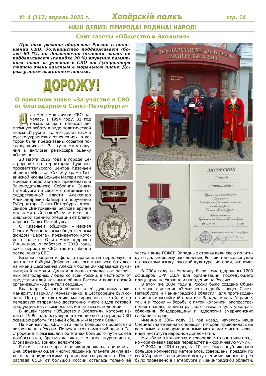 Журнал «Хоперскiй полкъ» выпуск №4 (112) апрель 2025 года
