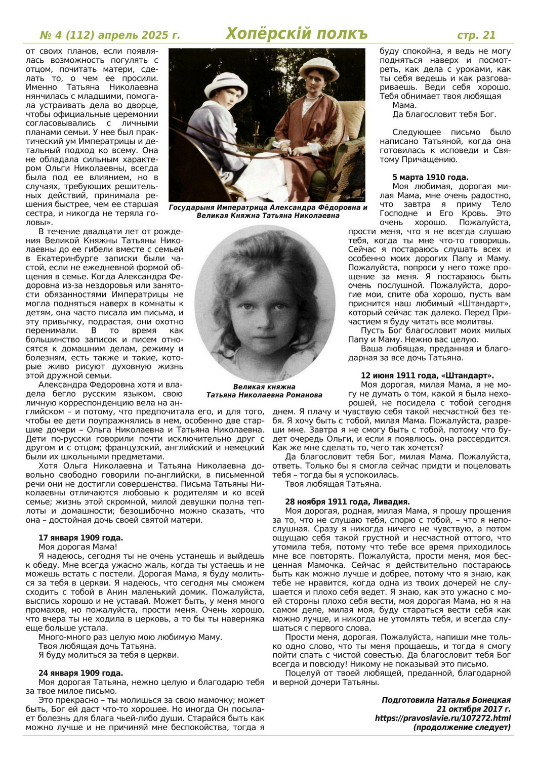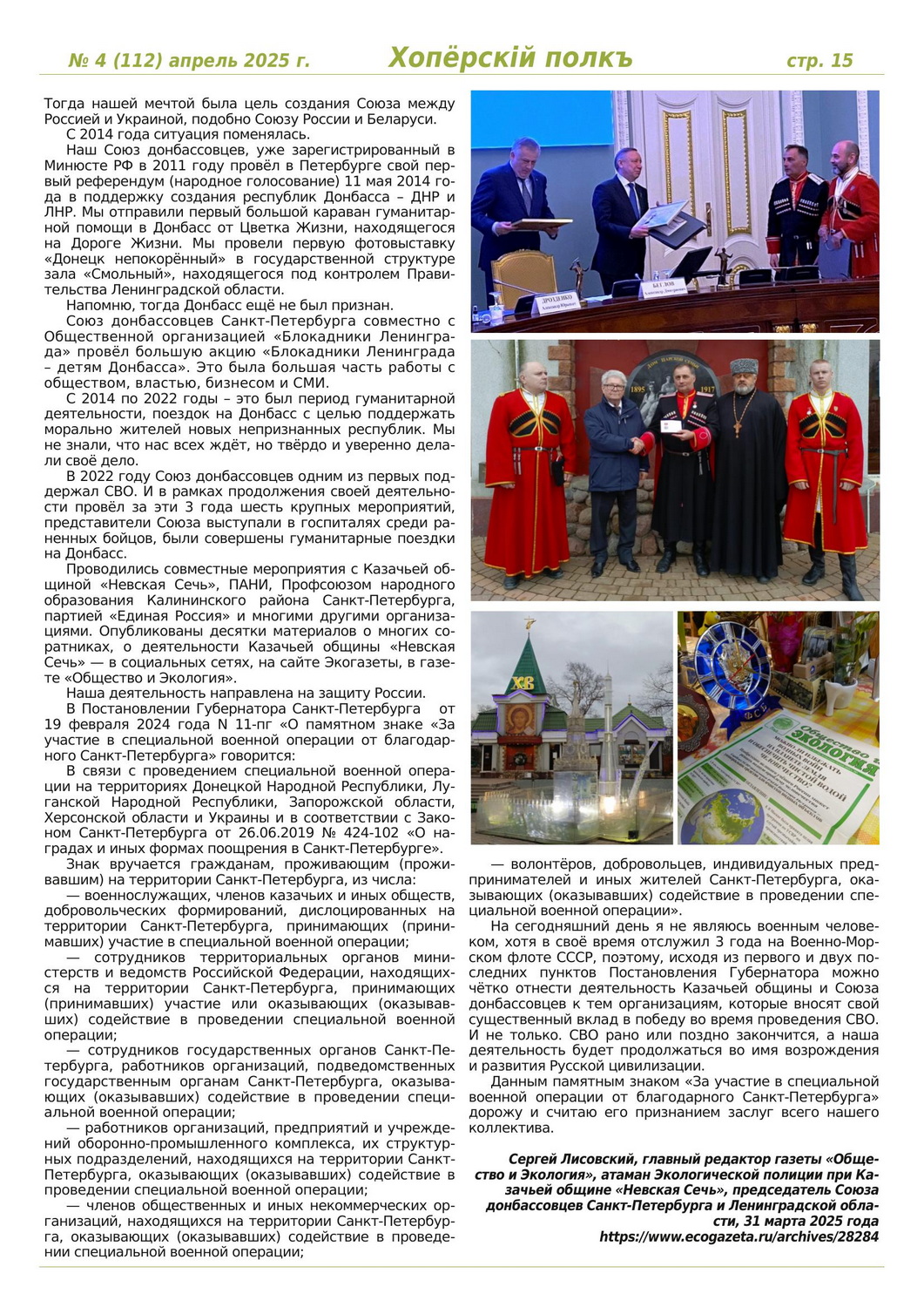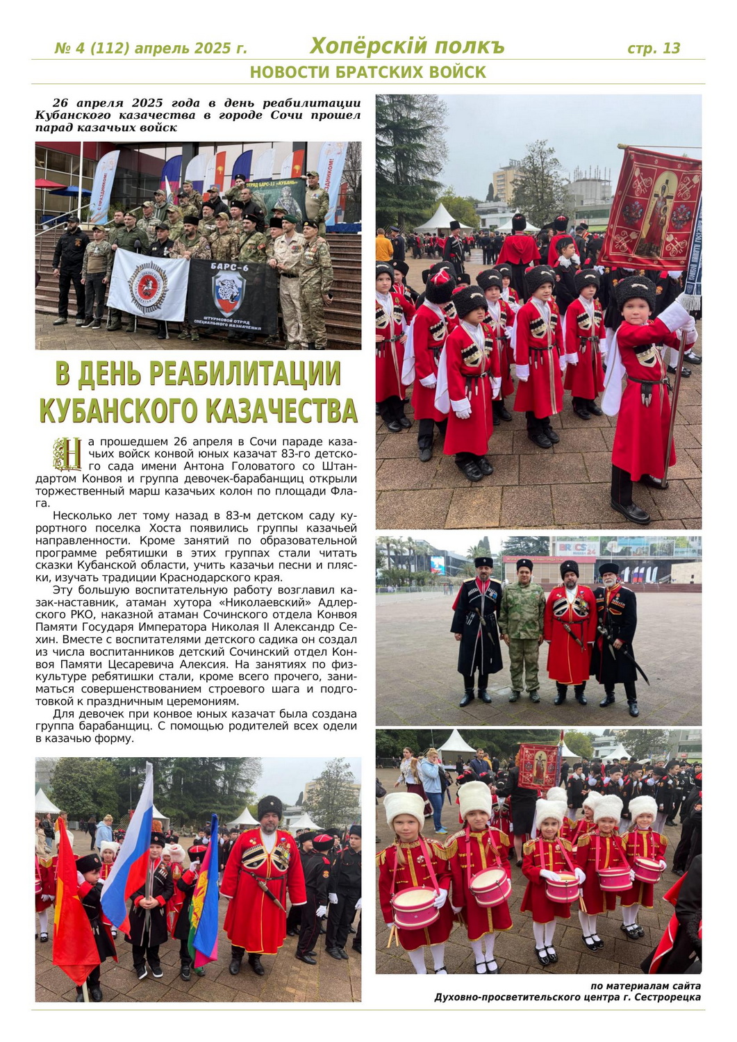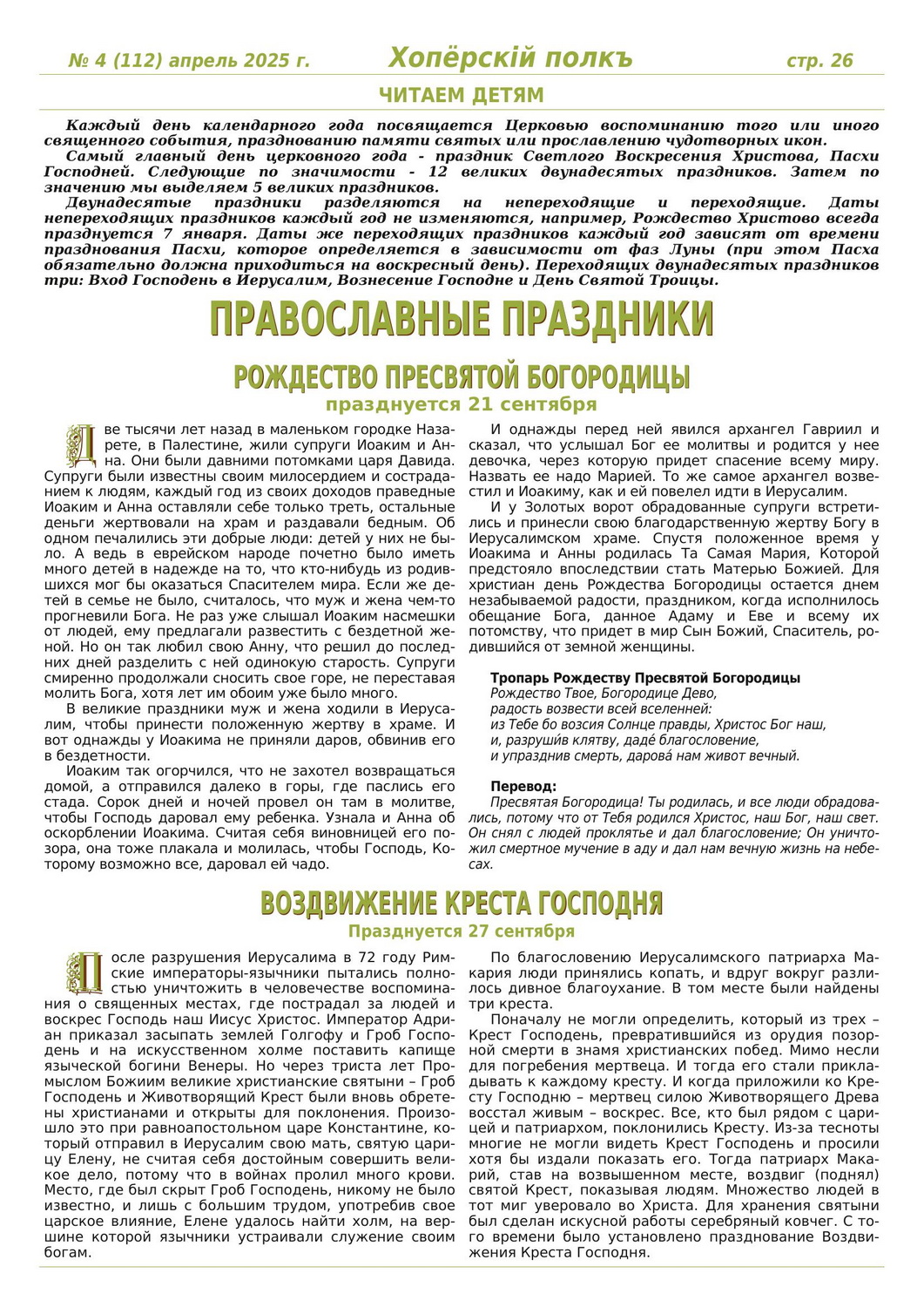 Журнал «Хоперскiй полкъ» выпуск №4 (112) апрель 2025 года