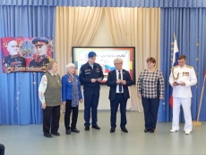 По благословению духовника казачьей общины Конвой Памяти Государя Императора Николая II, настоятеля храма Тихвинской иконы Божией Матери города Сестрорецка архимандрита Гавриила (Коневиченко) полномочный представитель Председателя Законодательного Собрания Санкт-Петербурга по связям с органами государственной власти Александр Александрович Ваймер вручил медаль «Русь святая! Храни веру православную» директору сестрорецкого технологического колледжа имени С.И. Мосина Денису Валерьевичу Бухарову.