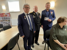 По благословению духовника казачьей общины Конвой Памяти Государя Императора Николая II, настоятеля храма Тихвинской иконы Божией Матери города Сестрорецка архимандрита Гавриила (Коневиченко) полномочный представитель Председателя Законодательного Собрания Санкт-Петербурга по связям с органами государственной власти Александр Александрович Ваймер вручил орденский знак «Император Николай II» участнику Специальной военной операции на Украине Денису Ивановичу Королеву.