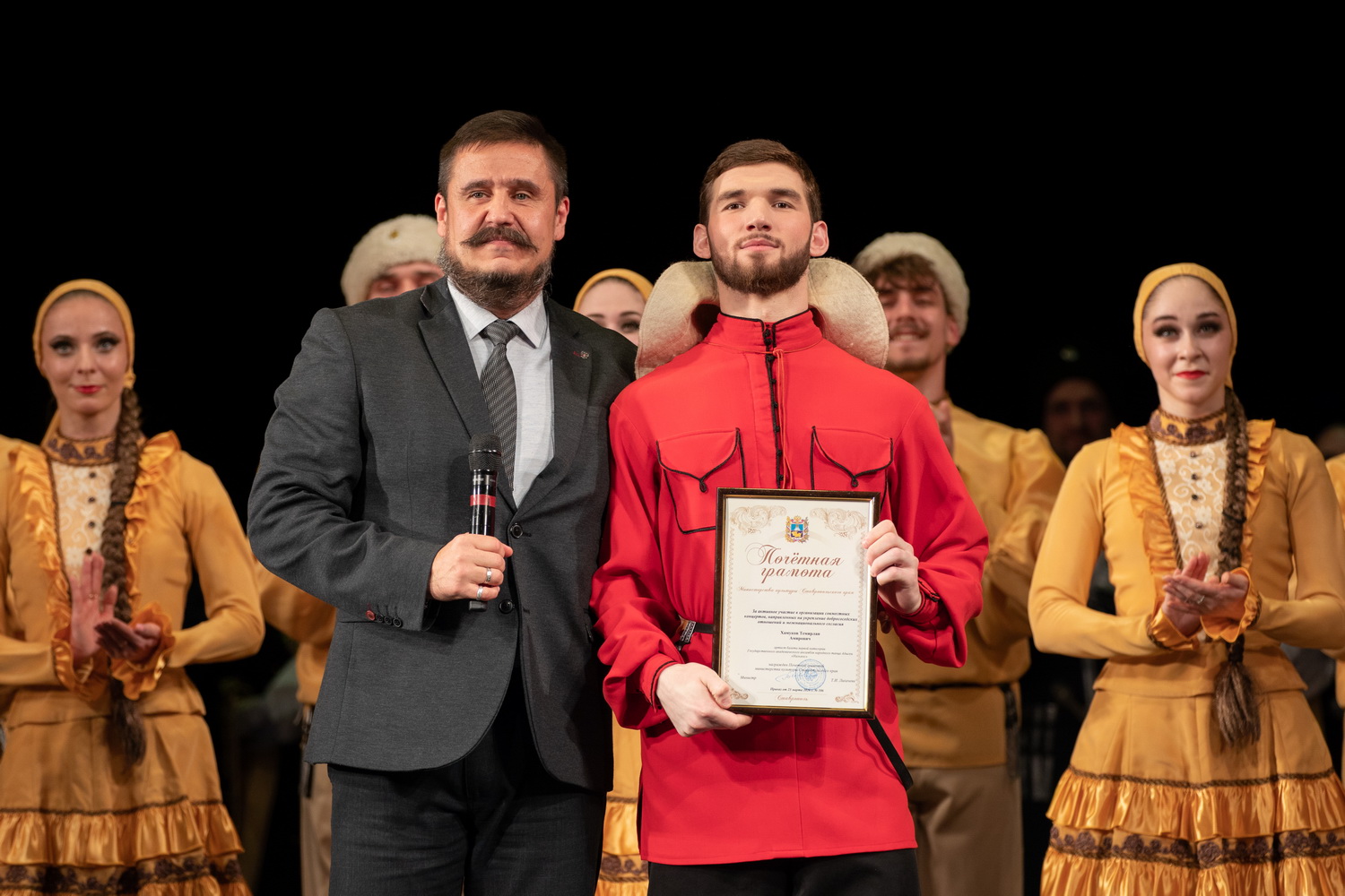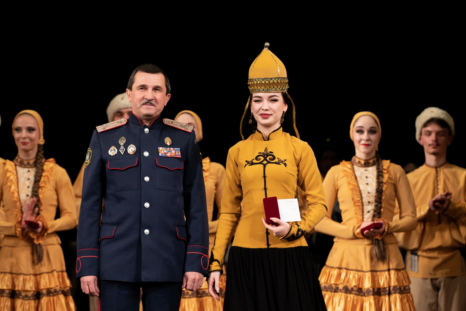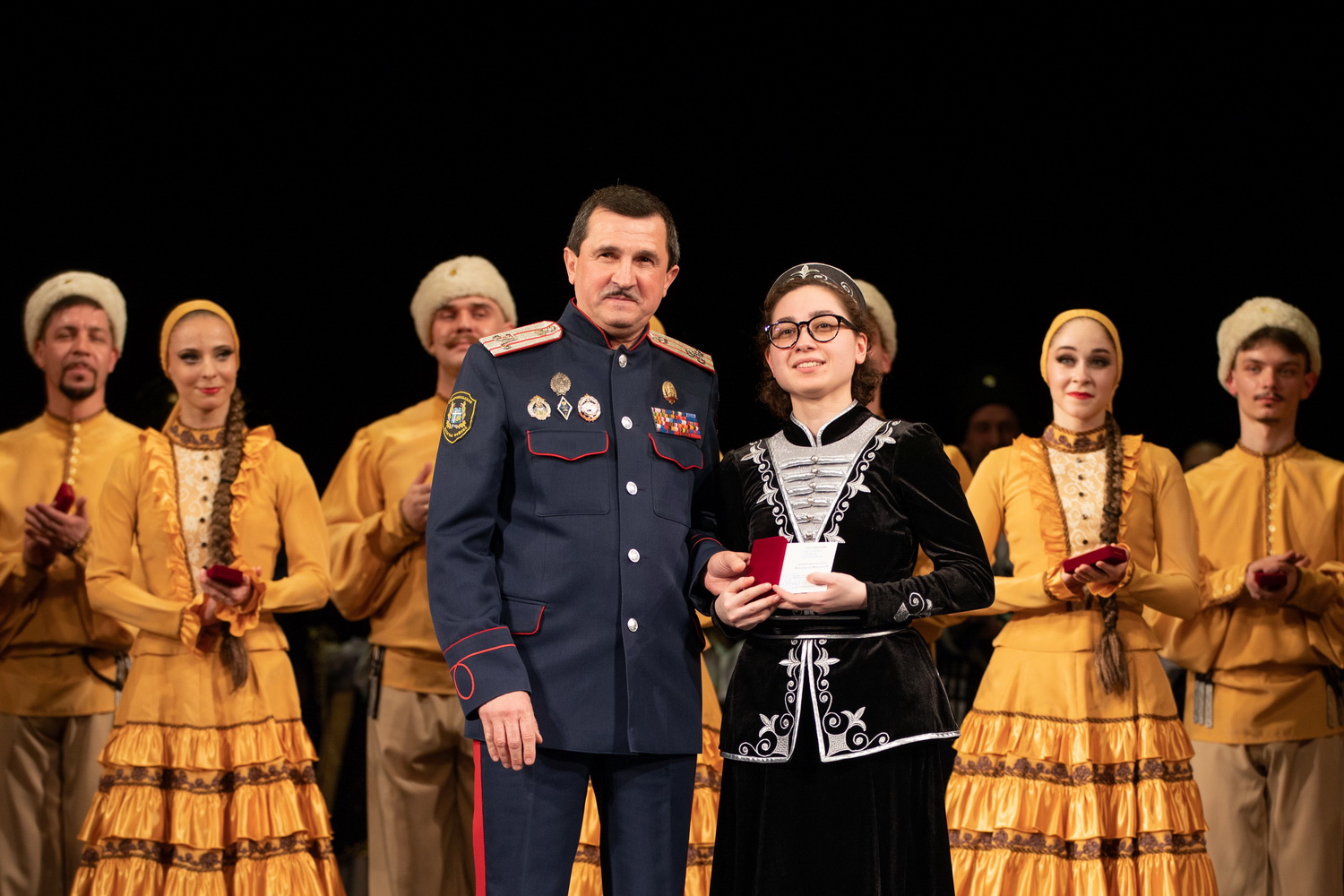 Награда была вручена 60 участникам Государственного казачьего ансамбля песни и танца «Ставрополье» и 10 участникам Государственного академического ансамбля народного танца Адыгеи «Нальмэс».