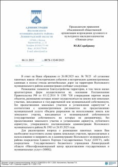17 ноября 2025 года. Ходатайство об увековечении памяти знаменательного события в Волховском муниципальном районе